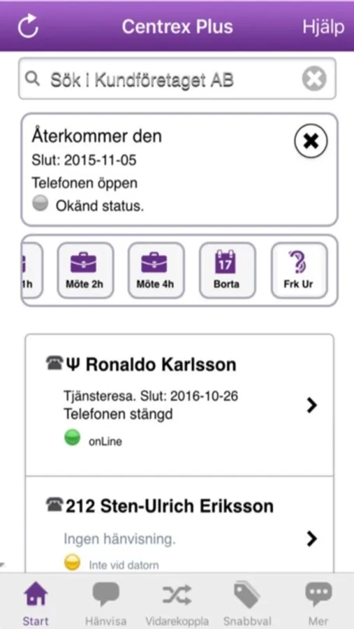 Centrex Plus en avancerad app för att hantera din anknytning i Centrex och söka kollegor eller funktioner i Centrex företagskatalog (Marvin). Ring, SMS:a, maila eller spara sökta personer direkt från sökresultatet. Lägg upp dina mest frekventa kontakter som "vänner" på första sidan.