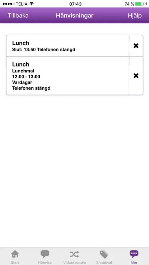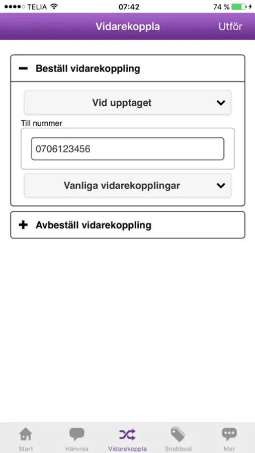 Hänvisa eller medflytta anknytningen, antingen omedelbart eller schemalagt, med in- och urkopplingstider samt meddelande till telefonisterna.