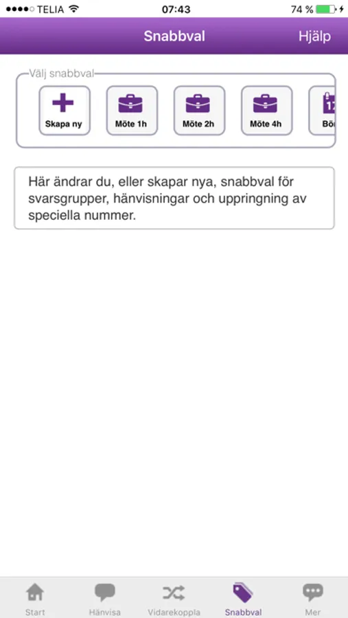 Definiera egna snabbknappar för Möte 60 minuter, Lunch 45 minuter,... eller in- och urloggning i svarsgrupper samt uppringning av speciella, frekventa, telefonnummer, som t ex röstbrevlåda.