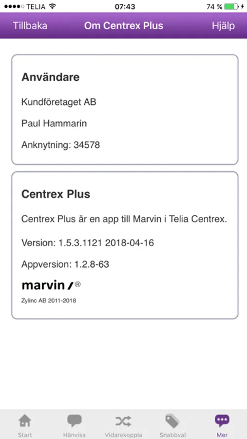 Observera att det krävs en speciell app-licens till Marvin för att appen ska fungera. Kontakta er centrexsäljare för ytterligare information.