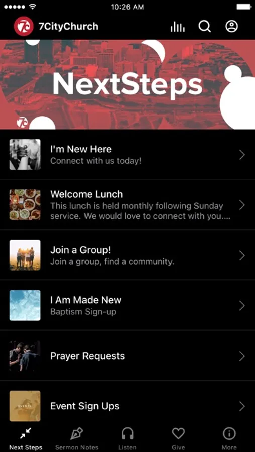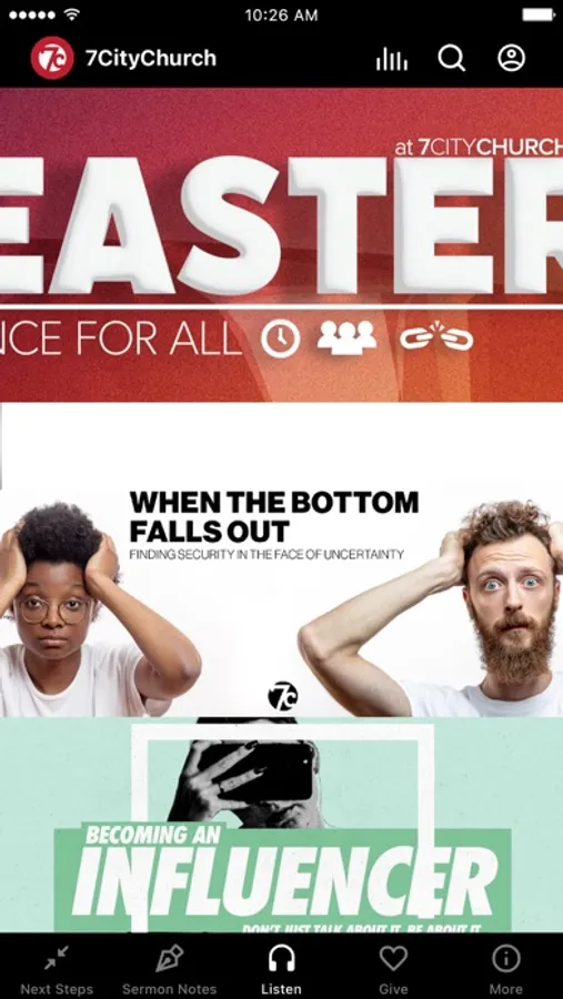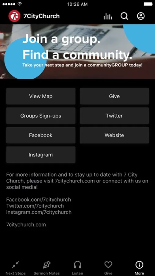 The 7 City Church App was created with the Subsplash App Platform.