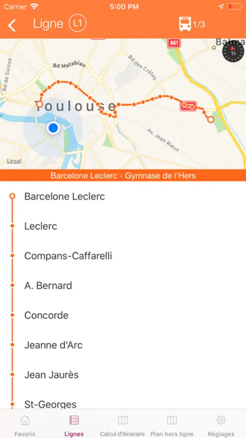 - Affichage de tous les tracés des lignes de bus, tram et TAD (transports à la demande) de l’agglomération toulousaine et possibilité d’afficher les arrêts de cette ligne sur une carte pour faciliter la compréhension du trajet,