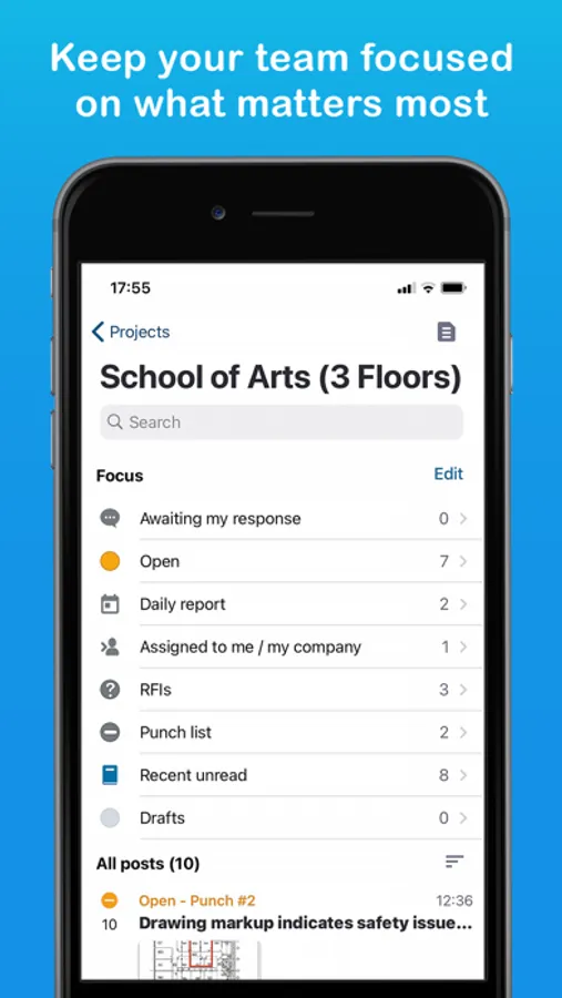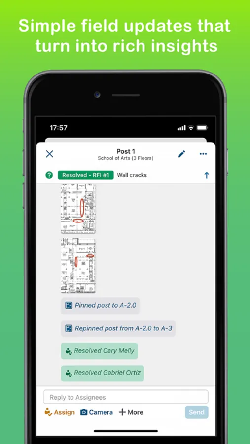 • Collaborate instantly, from anywhere: superintendents, foremen, subcontractors, GCs, and owners