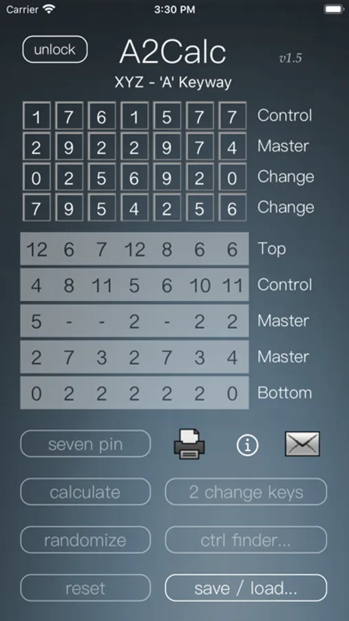 Automatically calculates the pinning chart for A2 SFIC. Built for 6 or 7 pin systems, however, less can be achieved by using a decimal to erase a chamber.