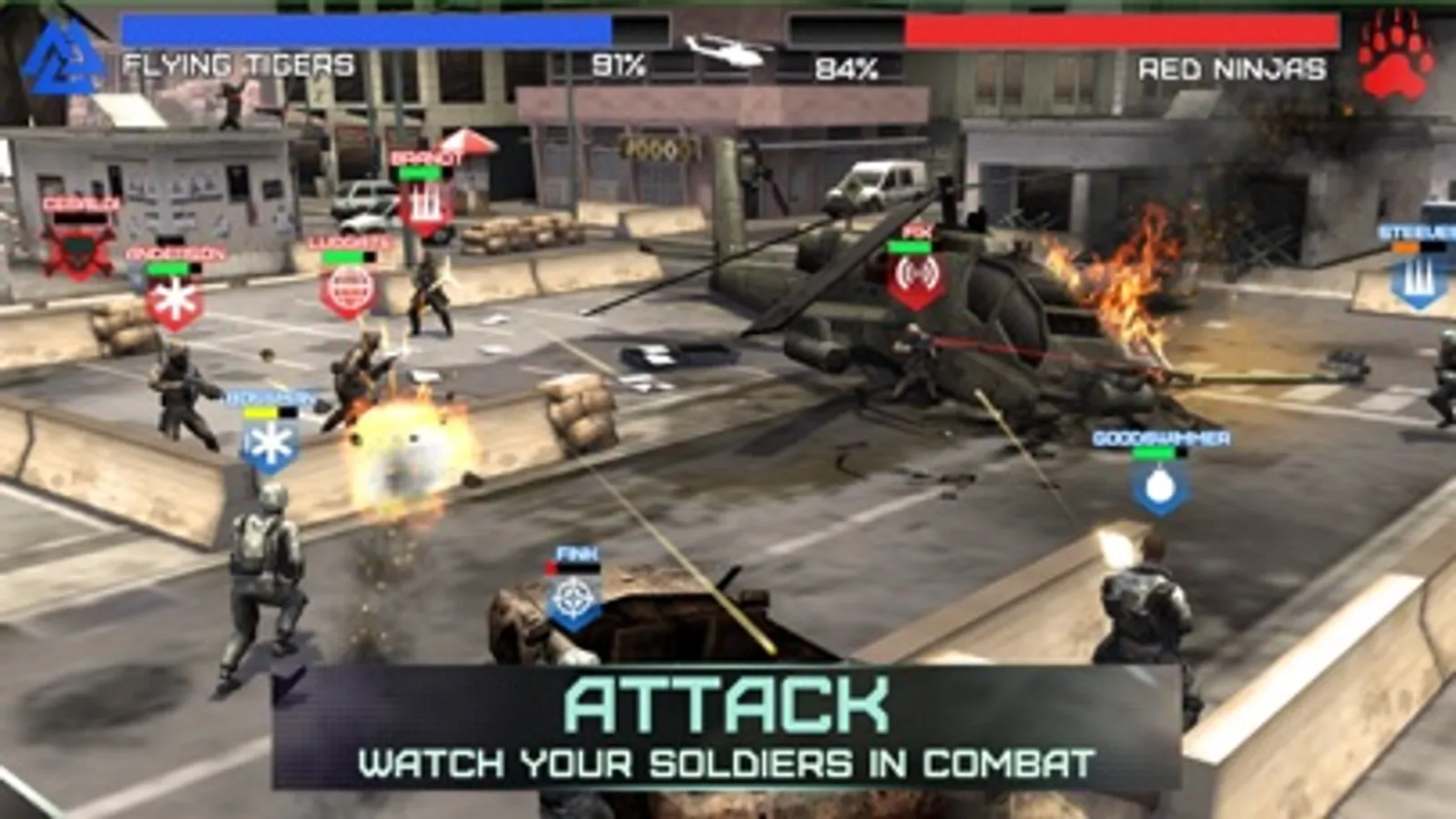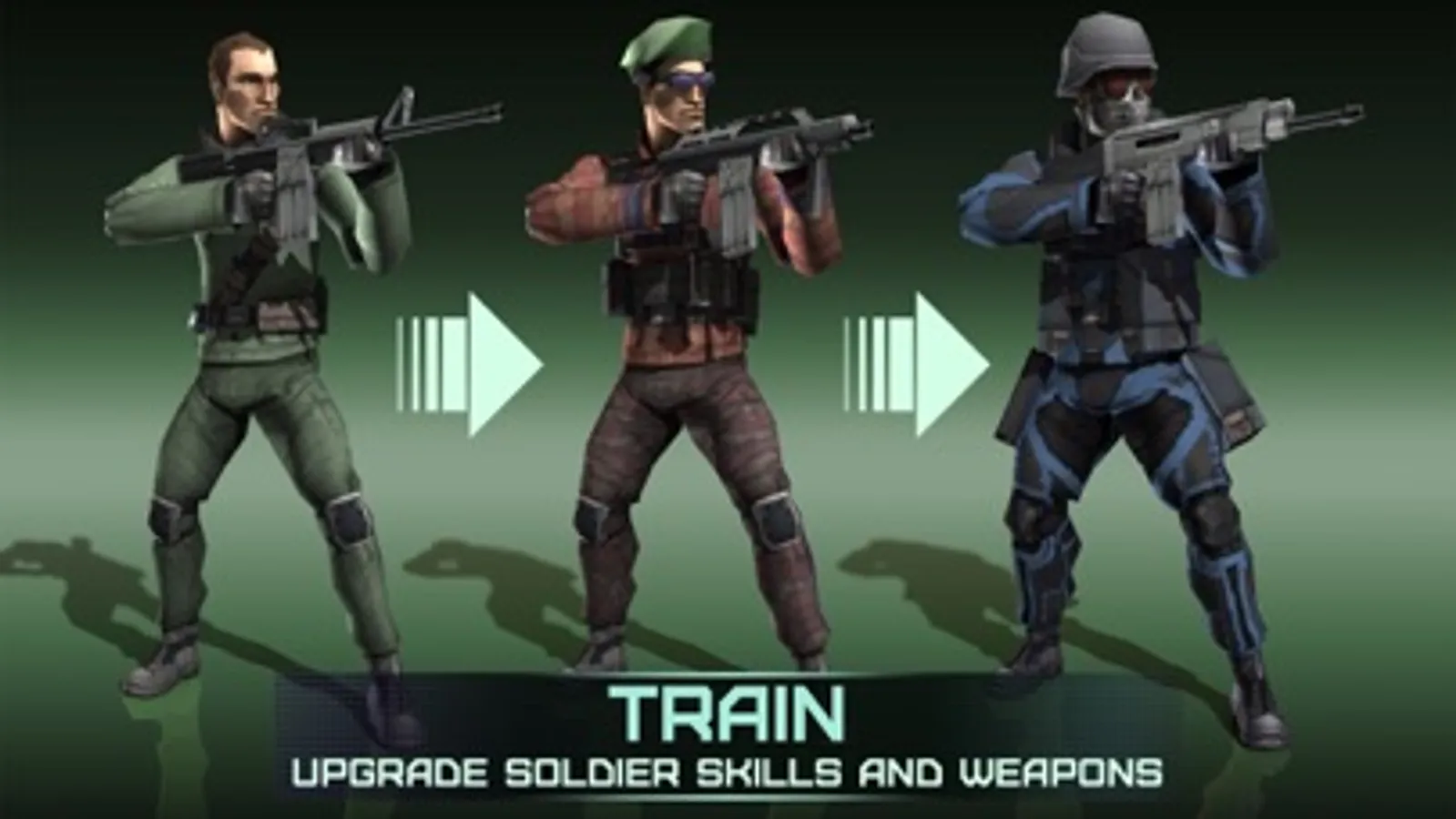 * Unlock new soldiers with better weapons, guns, and skills to improve your team's combat assault rating.