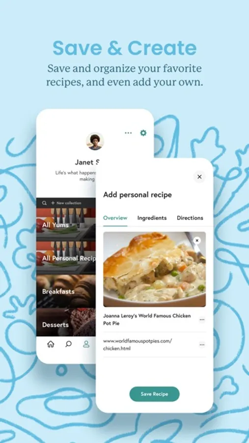 Soup up Yummly with your own personal recipes. Preserve Grandma’s, create your own, or save those you found online.