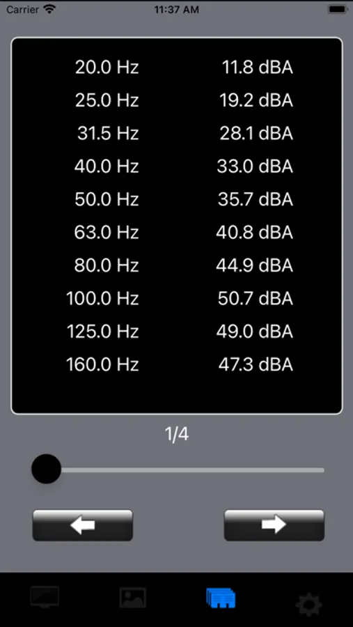 所有频率点的声级的列表显示;