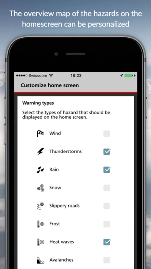 • all warnings on natural hazards from the Federal Authorities (severe weather, floods, forest fire, earthquakes and avalanches)