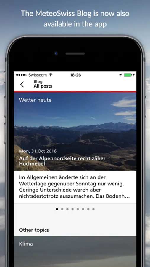 The MeteoSwiss App from the national weather provider. With weather forecasts, current measurements, a blog about weather and climate and natural hazard warnings. Including individualizable live tiles and zoomable maps. Save your favourit places in Switzerland and get the corresponding weather details and subscribe to the warning threshold and types of natural hazard warnings sent as push notifications.