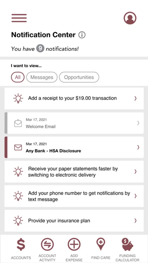 • You can view all accounts: FSA, FSA DCAP, HRA, HSA, & Transit.