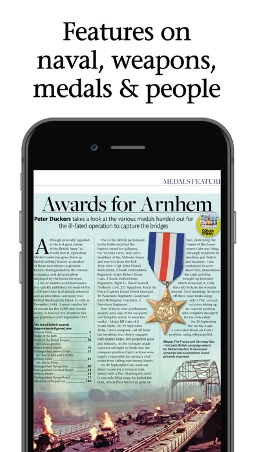 - Features on naval, weapons, medals and people