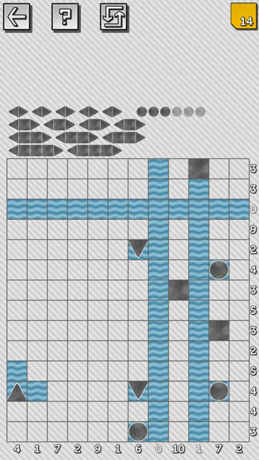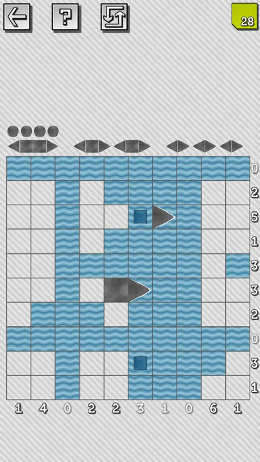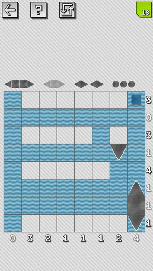 In this logic puzzle game, you need to find the battleships hidden in a grid.