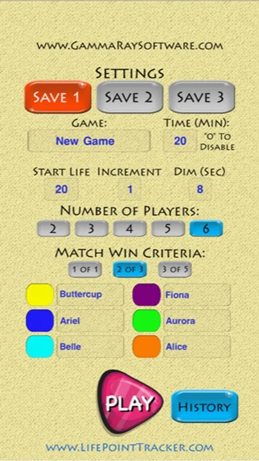Customizable scoresheet application designed for generic trading card games. Ideally suited for any game that starts with points and ends when points are at 0. Keeps track of up to 6 players.