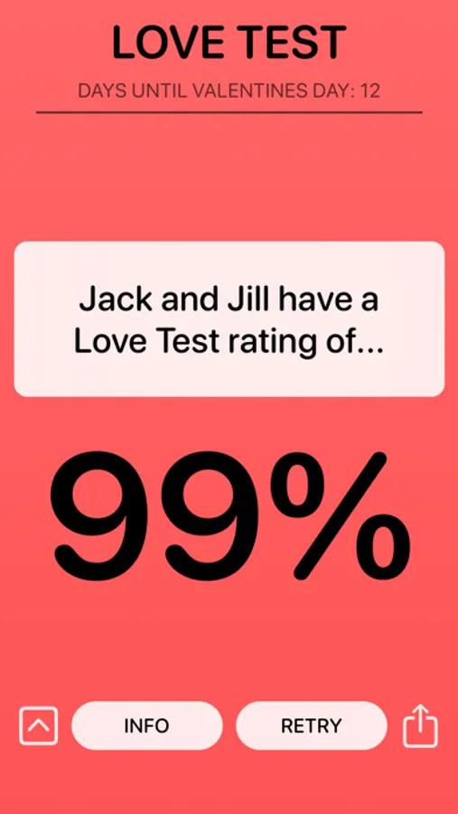 Want to find out how compatible two people are? Love Test can deliver you fast, reliable, and accurate compatibility ratings in seconds!