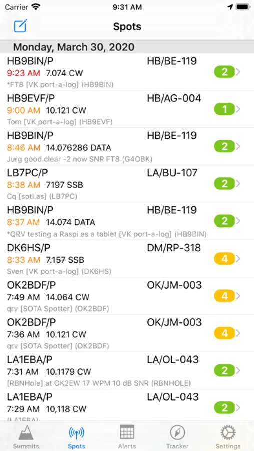 SOTAWATCH3 SPOTS AND ALERTS: