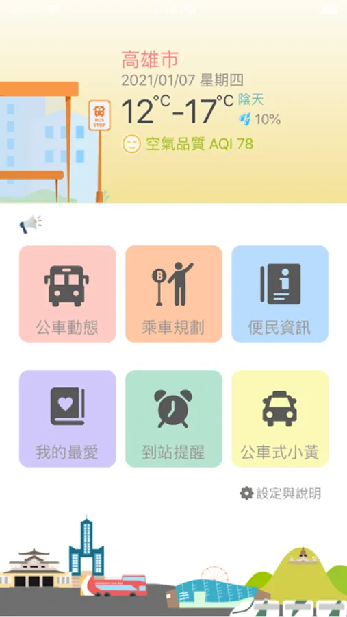 天候與空氣品質:提供您出門搭公車前最新高雄市天候與空氣品質概況,雨具、口罩、防曬準備免煩惱。