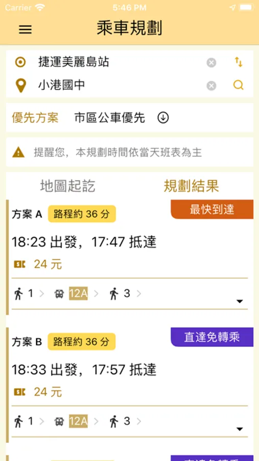 預約公車/小黃:可設定「預約搭乘」公車/小黃,可提前預約不漏接。