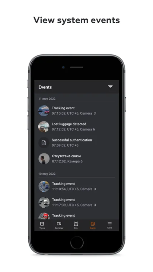 - receiving push notifications regarding the events that have occurred in your video surveillance system using scenarios previously set up on the Macroscop server;