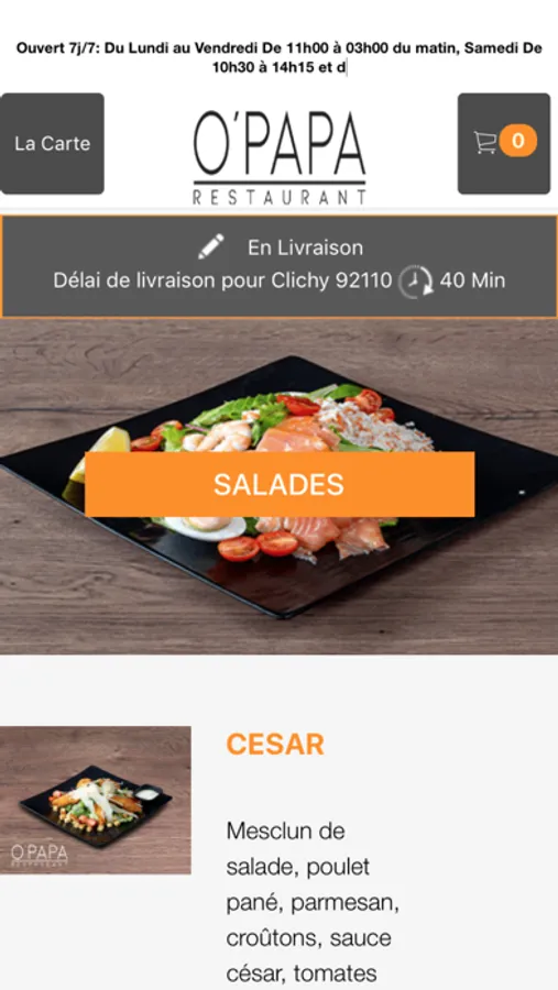 L'application O Papa vous permet de commander en ligne ou par téléphone via votre application. Vous pouvez consulter notre carte et choisir vos produits .