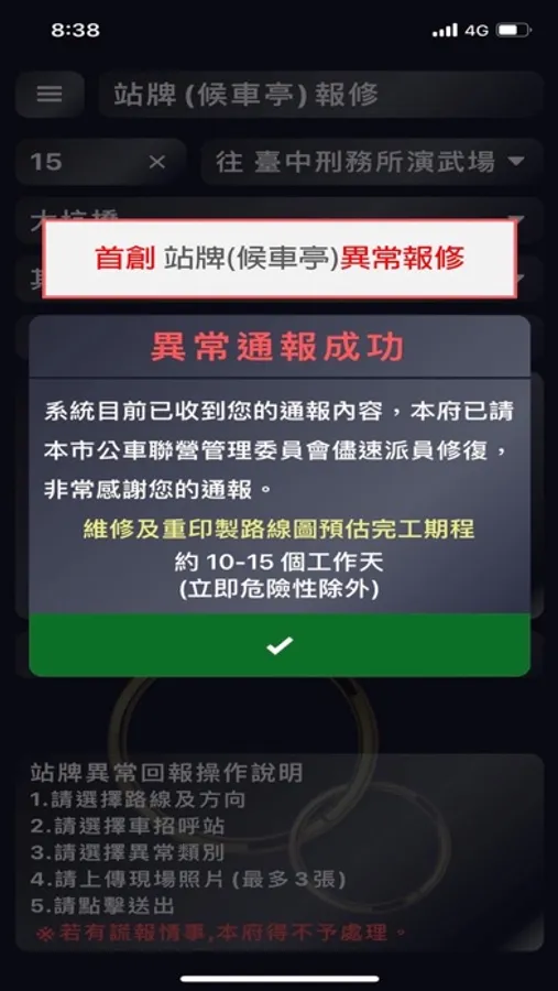 10. 站牌異常報修:可利用此功能反映候車設施的異常狀況。