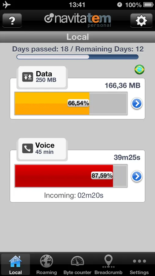 With the application Navita T.E.M. Personal you can control your monthly consumption of data on both national and international, thus avoiding surprises on the phone bill. The biggest difference is in the identification of roaming usage, who may represent the greatest costs of mobile telephony.