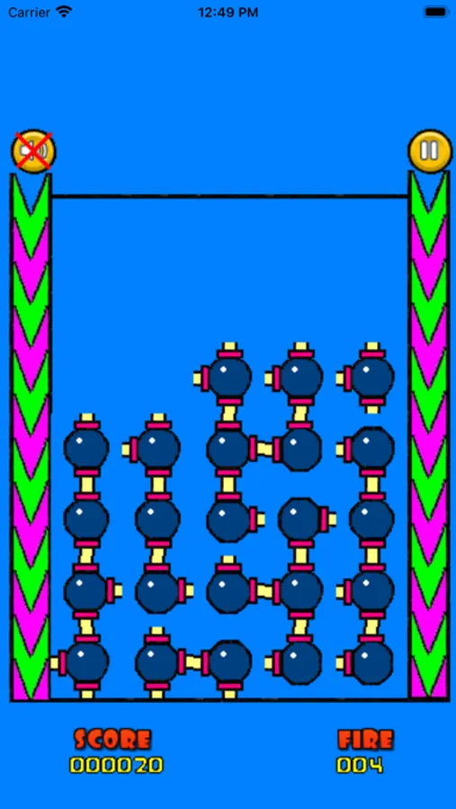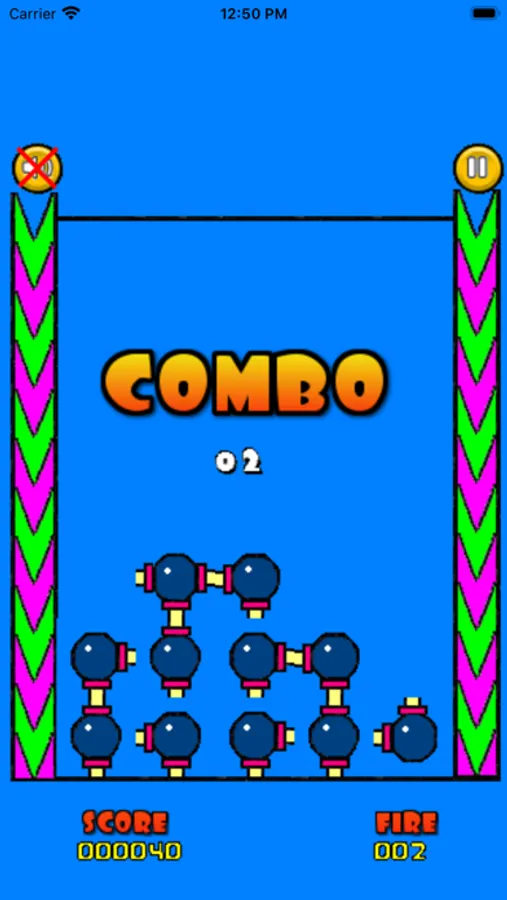 1. A frame appears randomly at the top on either side of the bomb stack.
