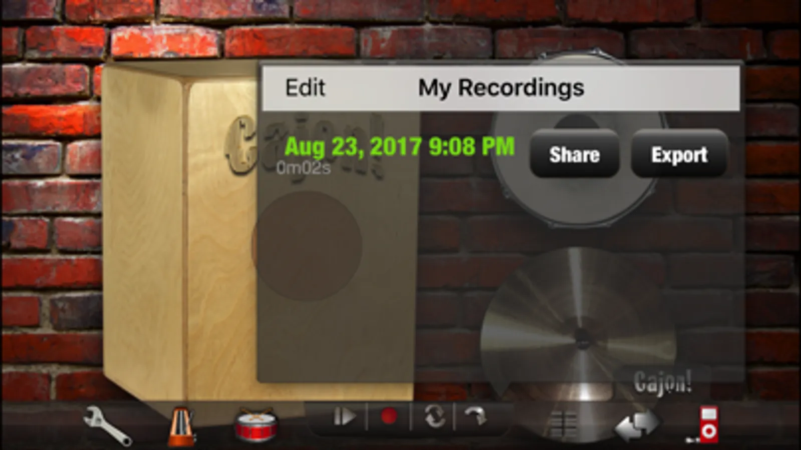 A unique addition to Cajon! Free is the ability to choose any color you desire for the cajon. Other great features include adjustments for pitch, reverb, delay, and touch sensitivity, multi-track recording, ability to share and export your recordings (optional in-app purchase), and so much more! There are also 16 PlayAlong Beats, 15 unique Drum Beats and 11 Music Beats to play along to, as well as 11 different metronome sounds.