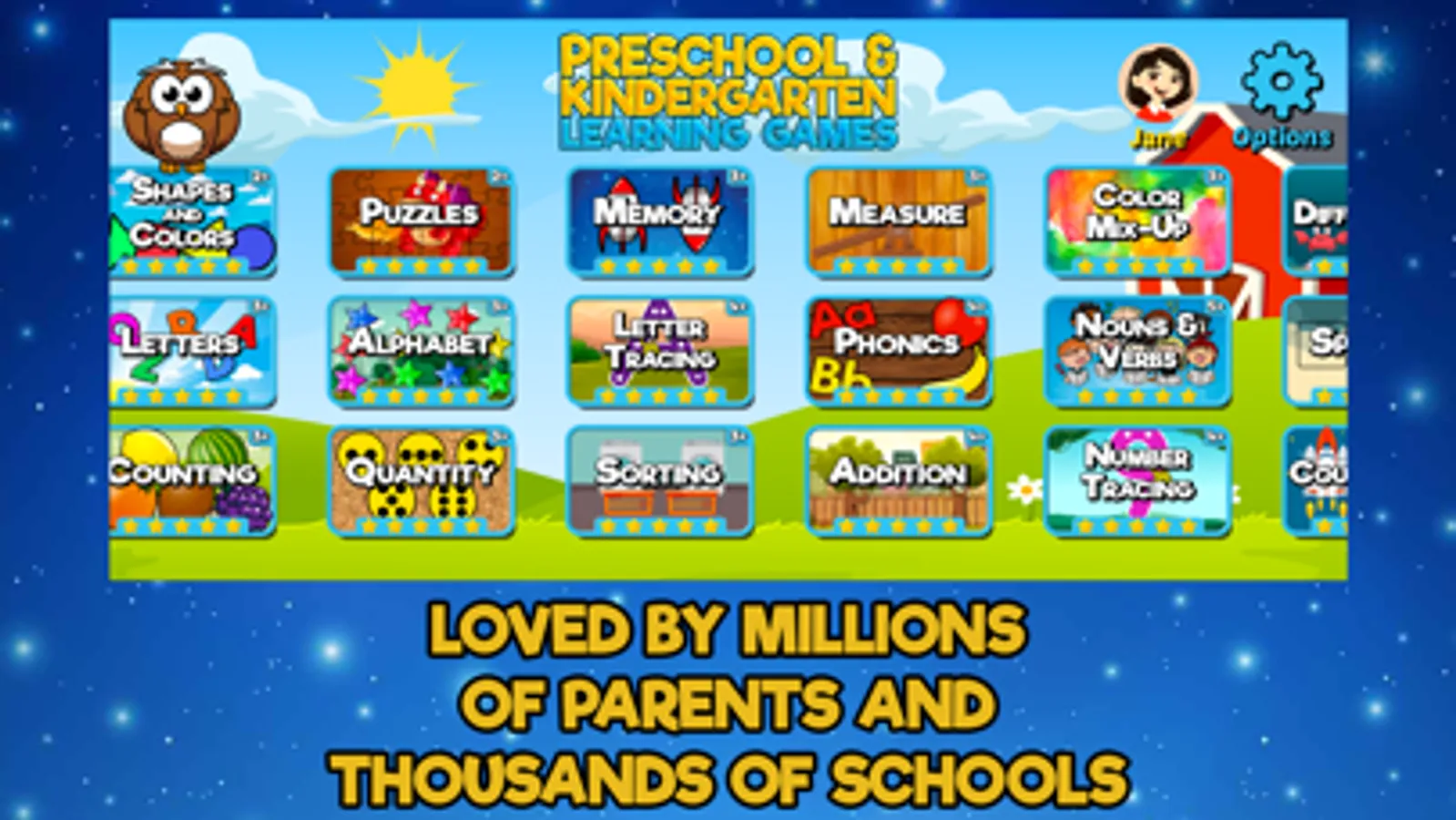 NOTE: This is the School Edition (SE) of the popular Preschool and Kindergarten Learning Games. This full version of the app is available for purchase from schools, parents, and organizations with no in-app purchases.