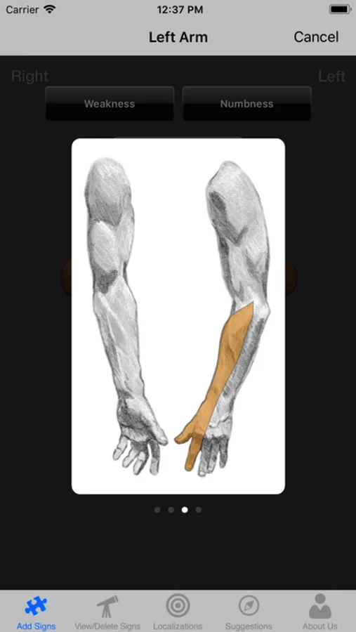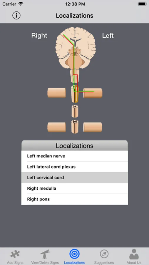 Here is how it works: Enter symptoms or abnormal exam and the neuroanatomic pathways are drawn out for you. Which muscles are weak? Where is the patient numb? Are the eye movements abnormal? Are the reflexes brisk or hypoactive? As you add more signs, Neuro Localizer will show you where your pathways overlap in the central or peripheral nervous system.