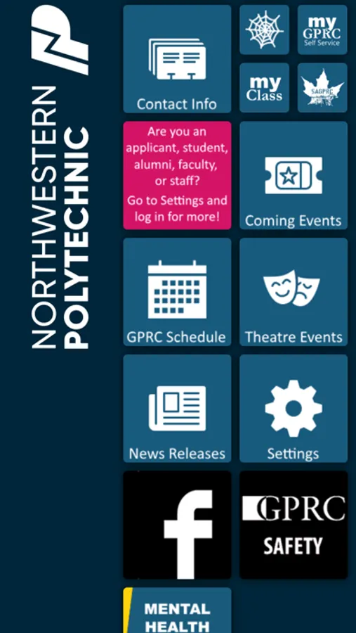 Northwestern Polytechnic (formerly Grande Prairie Regional College) has campuses in Grande Prairie and Fairview, Alberta, Canada. This app provides access to information about NWP including contact information, news releases, upcoming events and performances, and our academic schedule. For NWP students and alumni, the app also shows application status, course marks and schedules.