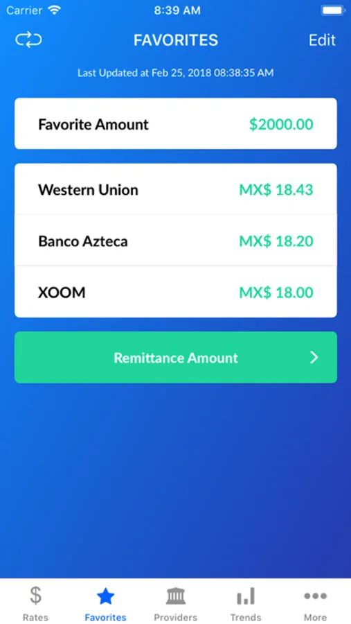 Peso currently shows the rates of ATM Cash, Wells Fargo, Western Union and Xoom.
