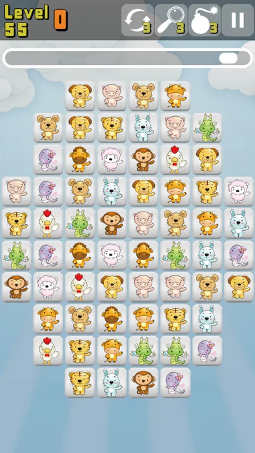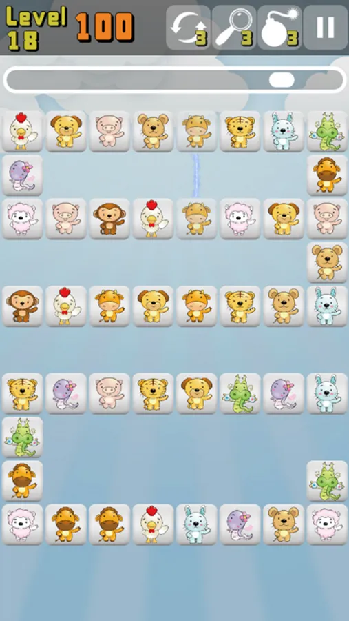 Link Link Animals is a classic elimination game. You tap two same animals, they will be eliminated if they can be linked by 3 or less lines. You will pass the level if you clear all animals within limited time. Gear up for this addictive casual game and you won't be able to put this game down for hours.