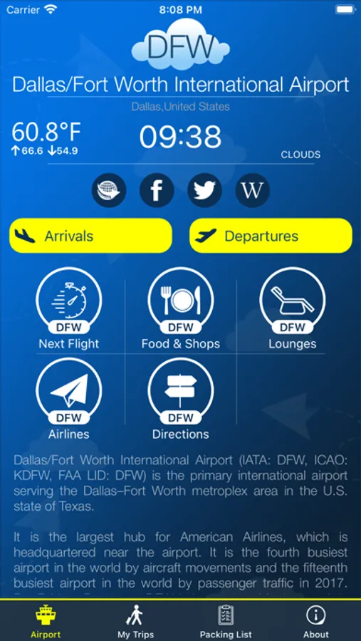App lets you know if your flights delayed or cancelled and gives you the tools needed to quickly find an alternate flight from Dallas/Fort Worth.