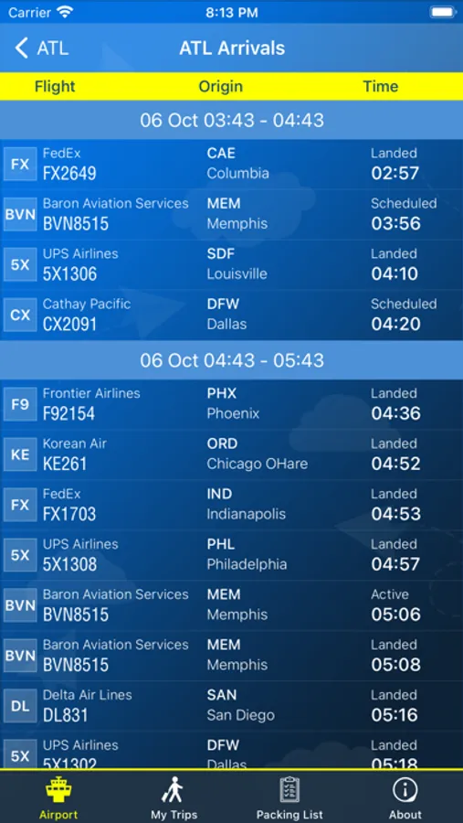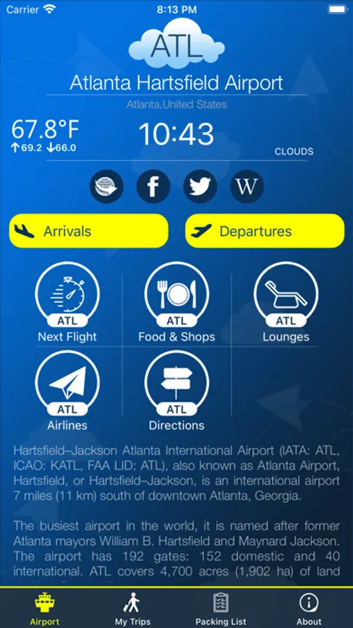 This app provides complete information for Atlanta Airport.