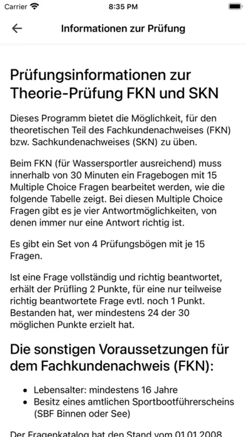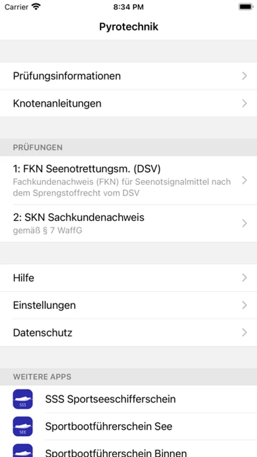 Dieses Programm bietet Dir die Möglichkeit, für den theoretischen Teil des Fachkundenachweises (FKN) für Seenotsignalmittel nach dem Sprengstoffrecht zu üben.