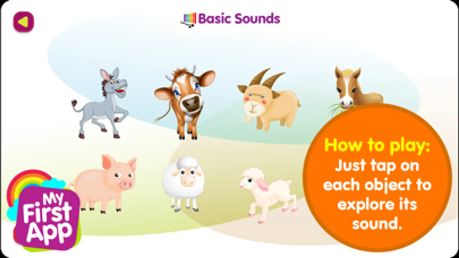 Babies love to explore the world around them, touching everything within their reach. Basic sounds app offers a fabulous basic sounds collection. Beautifully animated, in this easy to use app, a baby as young as a few months old can explore a variety of voices and sounds at the tip of his little fingers.