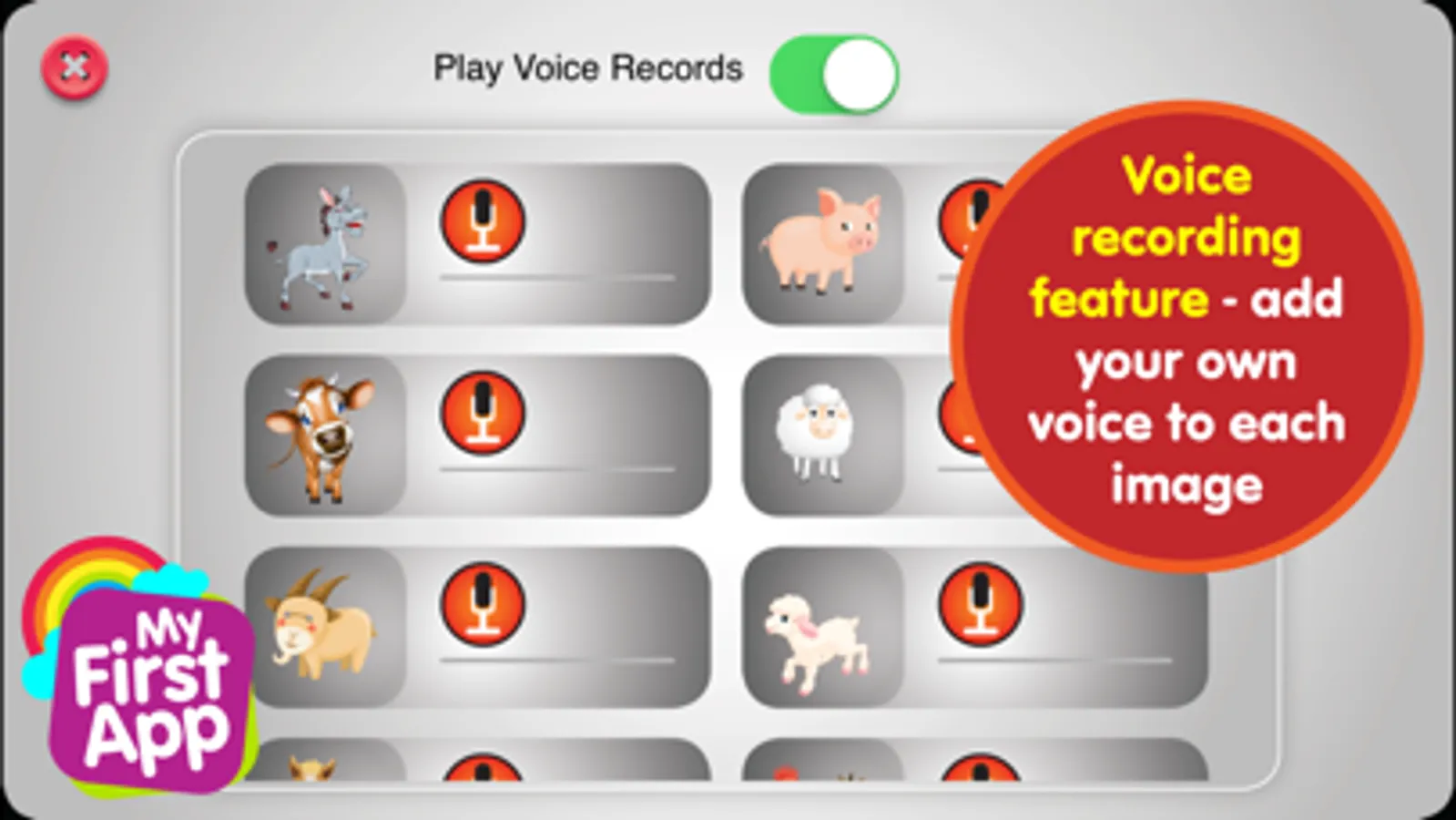 Each board features a few animals/objects with their matching sounds. It also offers a special voice recording feature which enables to name each object, and enhance the child's vocabulary.