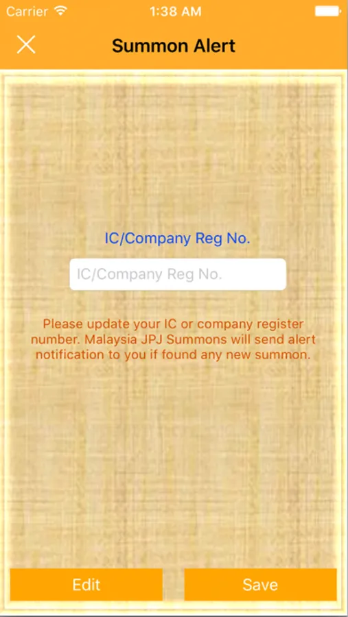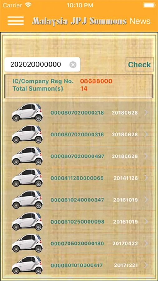 No required registration.Just key in your NRIC/Company registration number and get result in one touch and capable to send alert notification to user if found any new summon. Help family and friends to check their summons. It is hassle free, save time , cost effective and accessible at any time and any where as long as you have internet connectivity.