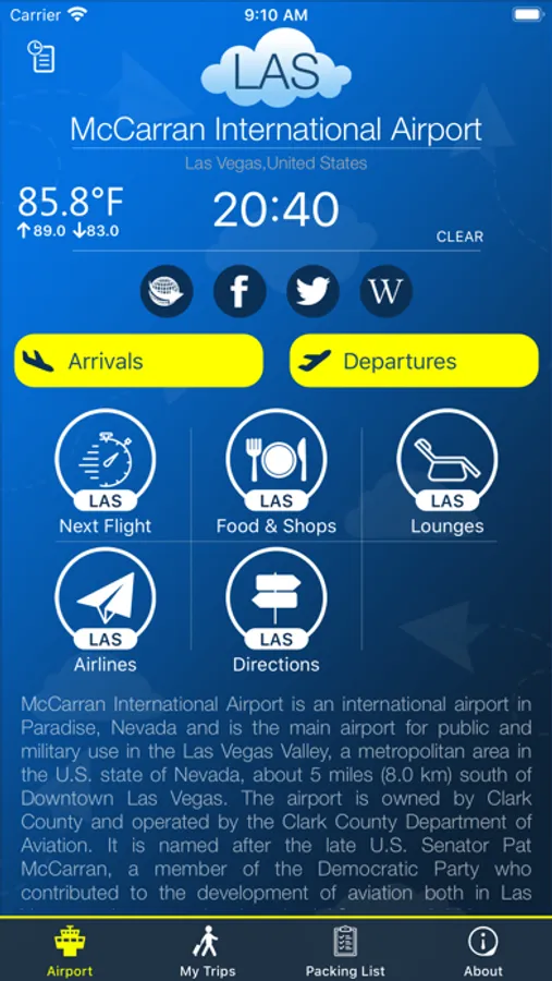 App lets you know if your flights delayed or cancelled and gives you the tools needed to quickly find an alternate flight from Las Vegas.