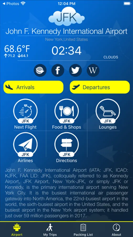 This app provides complete information for New York Airport.