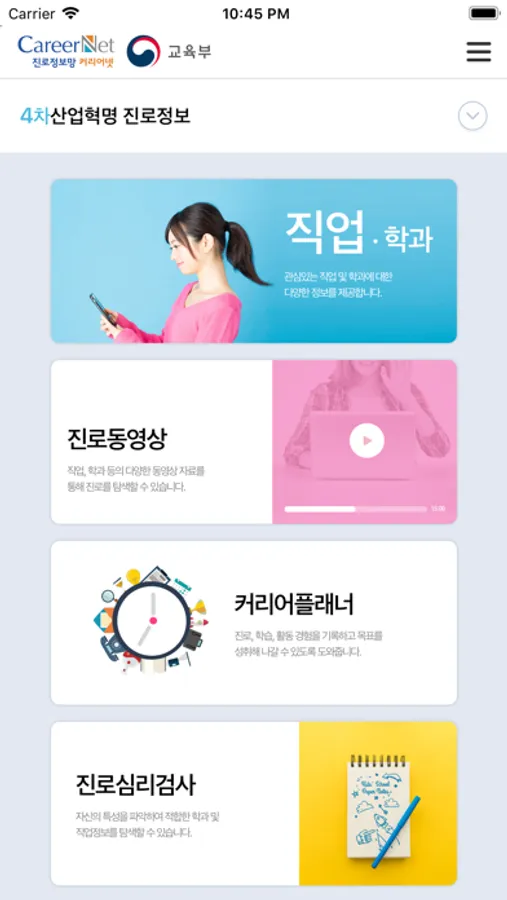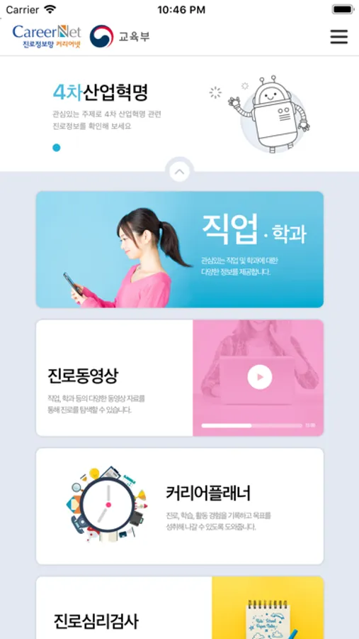 4. 진로동영상 : 창의적인 진로선택과 올바른 경력 개발을 위한 다양한 진로직업 교육용 멀티미디어 콘텐츠를 제공합니다.
