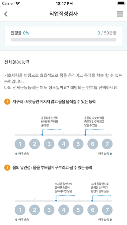 1. 진로심리검사 : 자신의 특성을 파악하고 적합한 직업과 학과정보를 탐색할 수 있는 진로심리검사를 제공합니다.