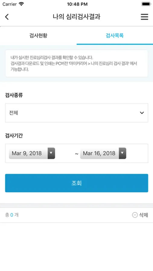 6. 마이커리어 : 회원 정보관리 및 심리검사 결과, 상담결과 등을 확인할 수 있습니다.