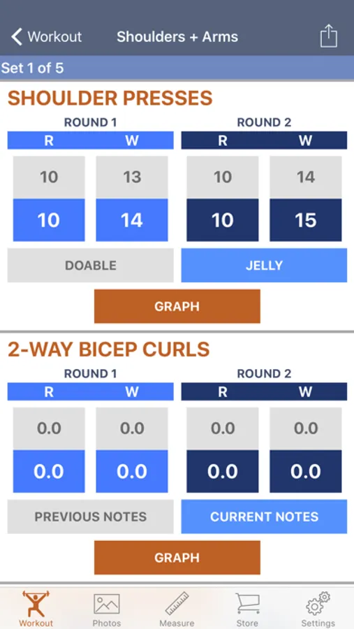 ***In-App Purchase - Graph View. View all your previous reps and weight for each exercise in graphical form during your workout.