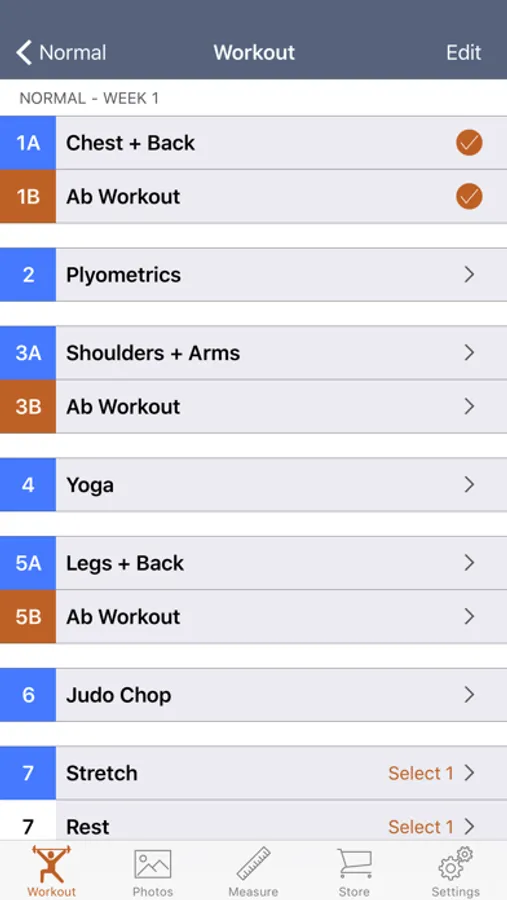 ***You can mark All workouts as complete by pressing the edit button on the week list.