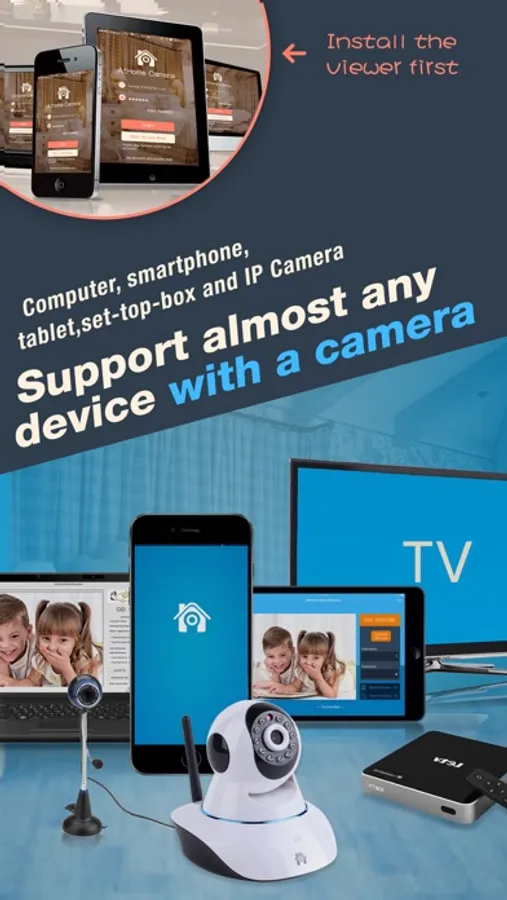 How to turn the old iphone,computer or set-top box into a security camera? You only need to install "Athome Video streamer " APP in it. With "Athome Camera Pro" APP in other iphone, you can view it anywhere, and receive alerts right away in case of any incident.