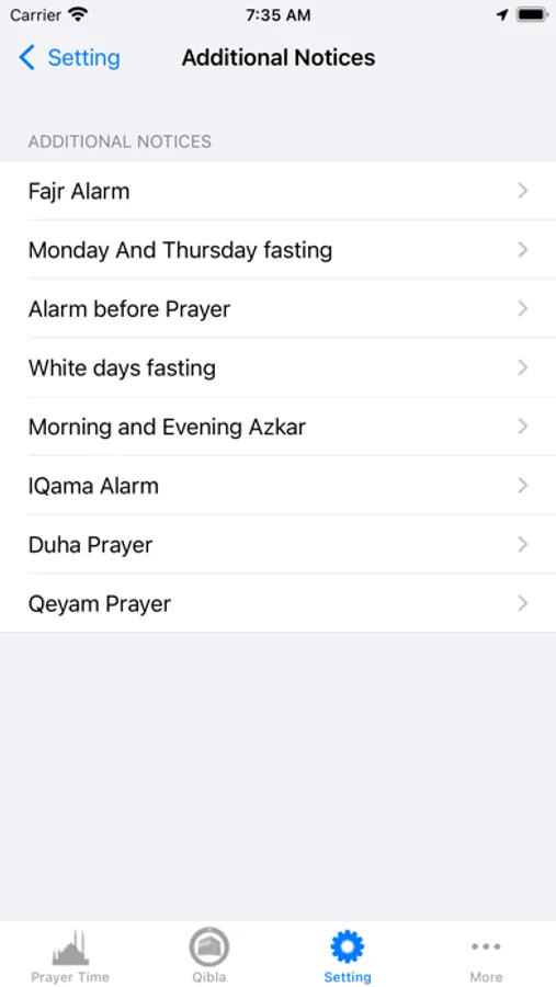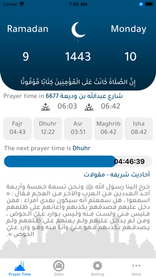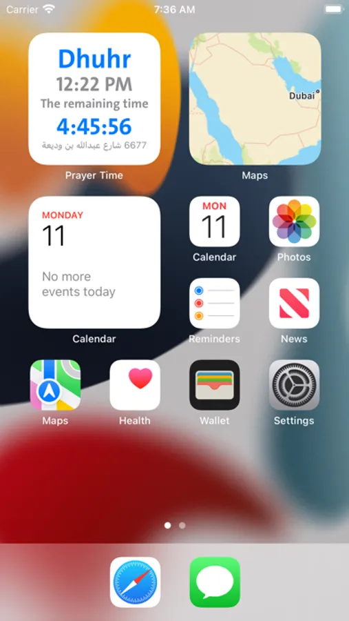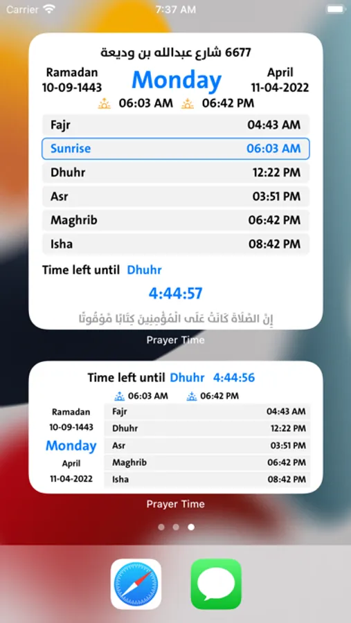 وكذلك معرفت أوقات الصلاة لخمسة ايام على الشاشة الرئيسية