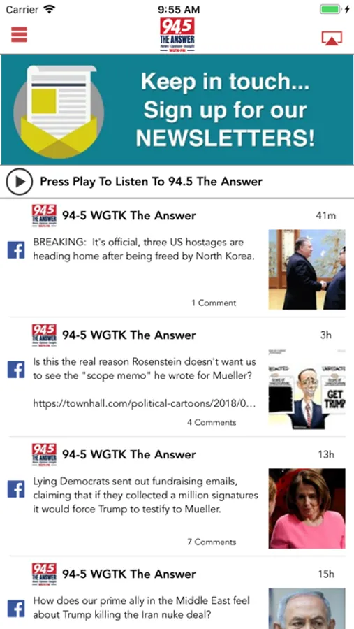 The 94.5 WGTK The Answer App is your station for breaking news and stimulating talk!
