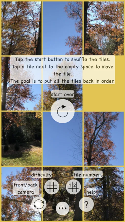 This is a sliding puzzle but not a regular one. The tiles contain live content coming from the camera which makes solving the puzzle much more challenging.