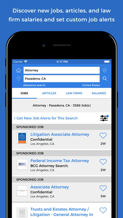 • Easy navigation and fast loading allows you to search for associate or partner openings and both in-house and firm positions.